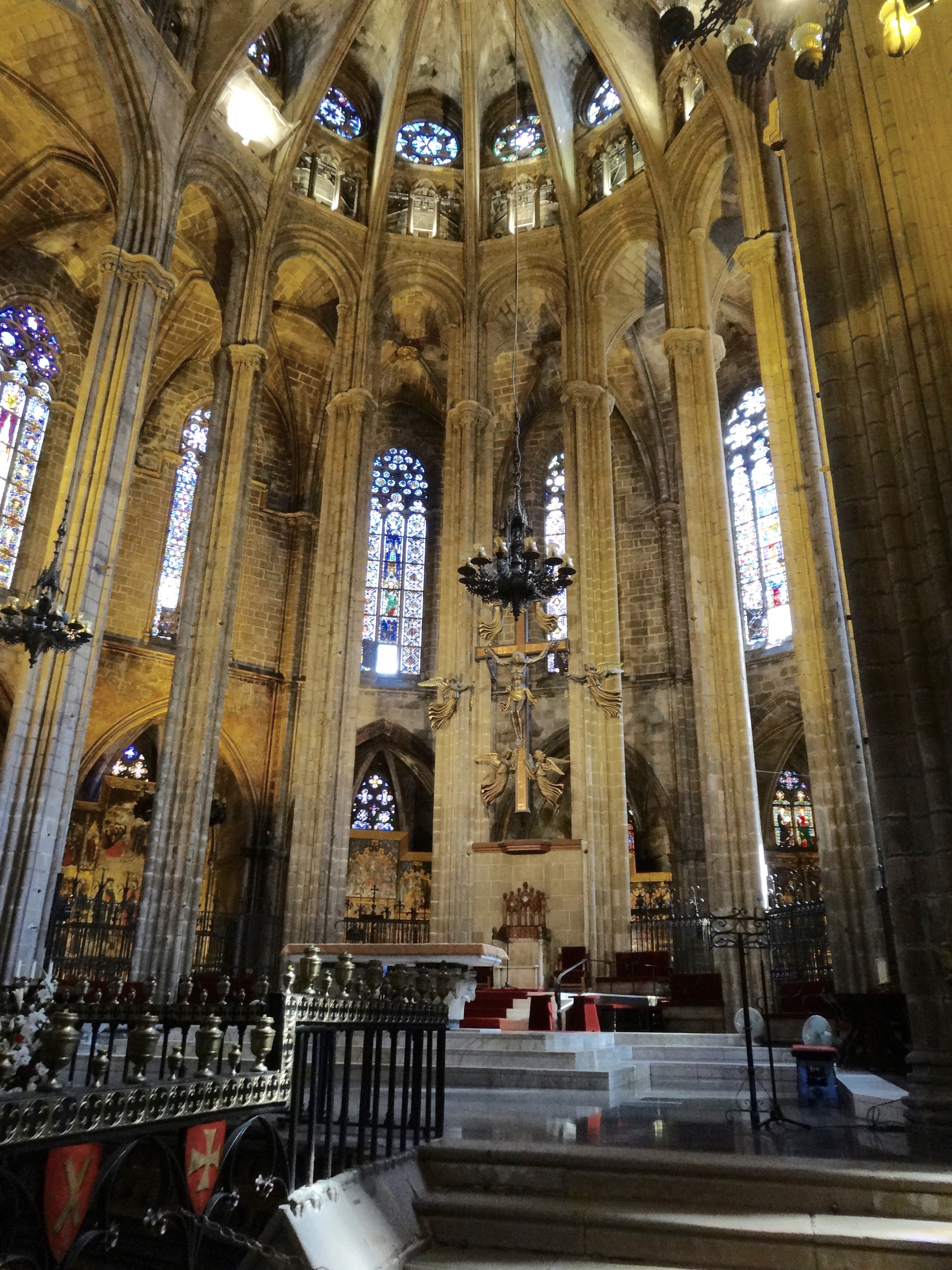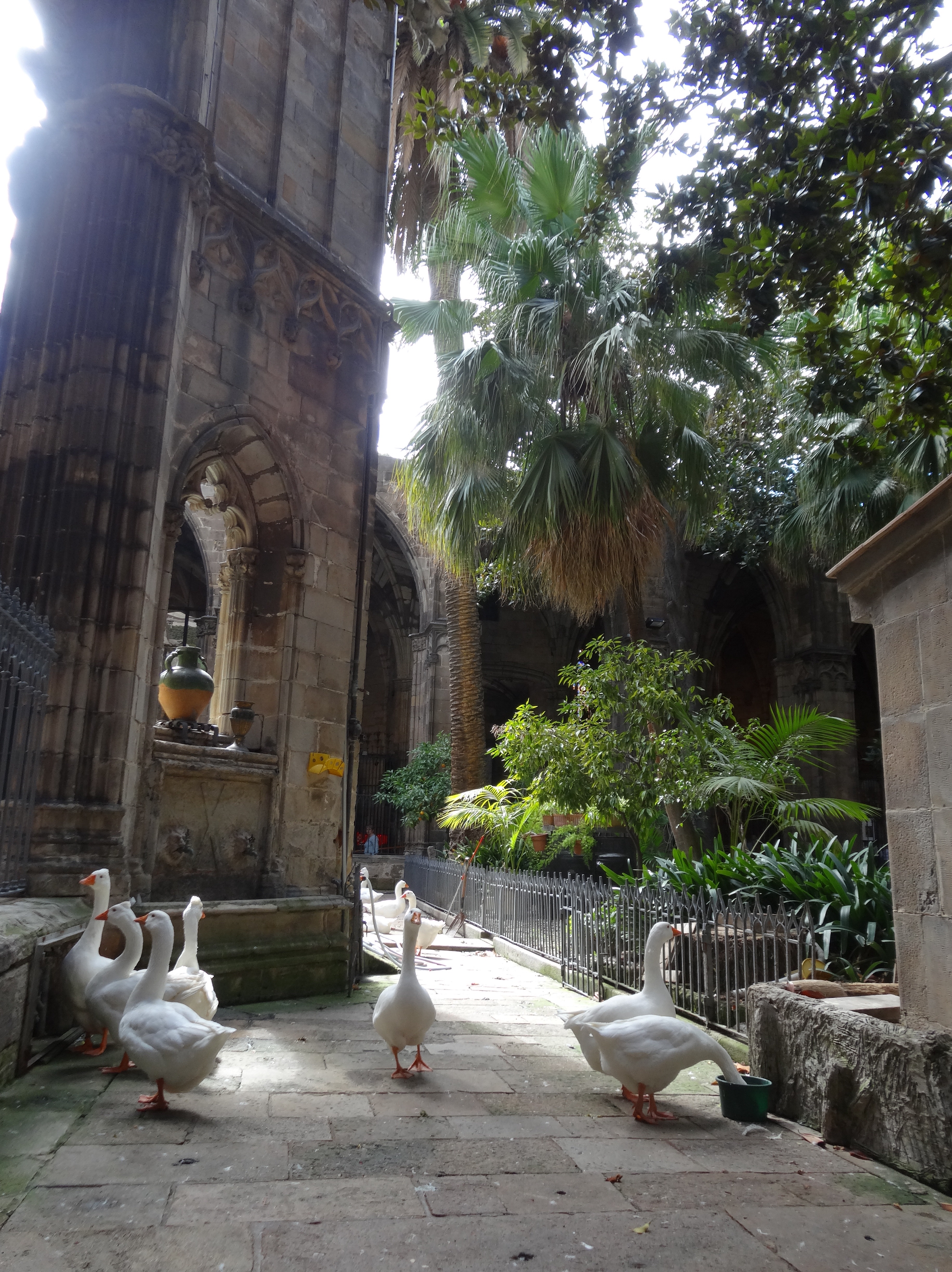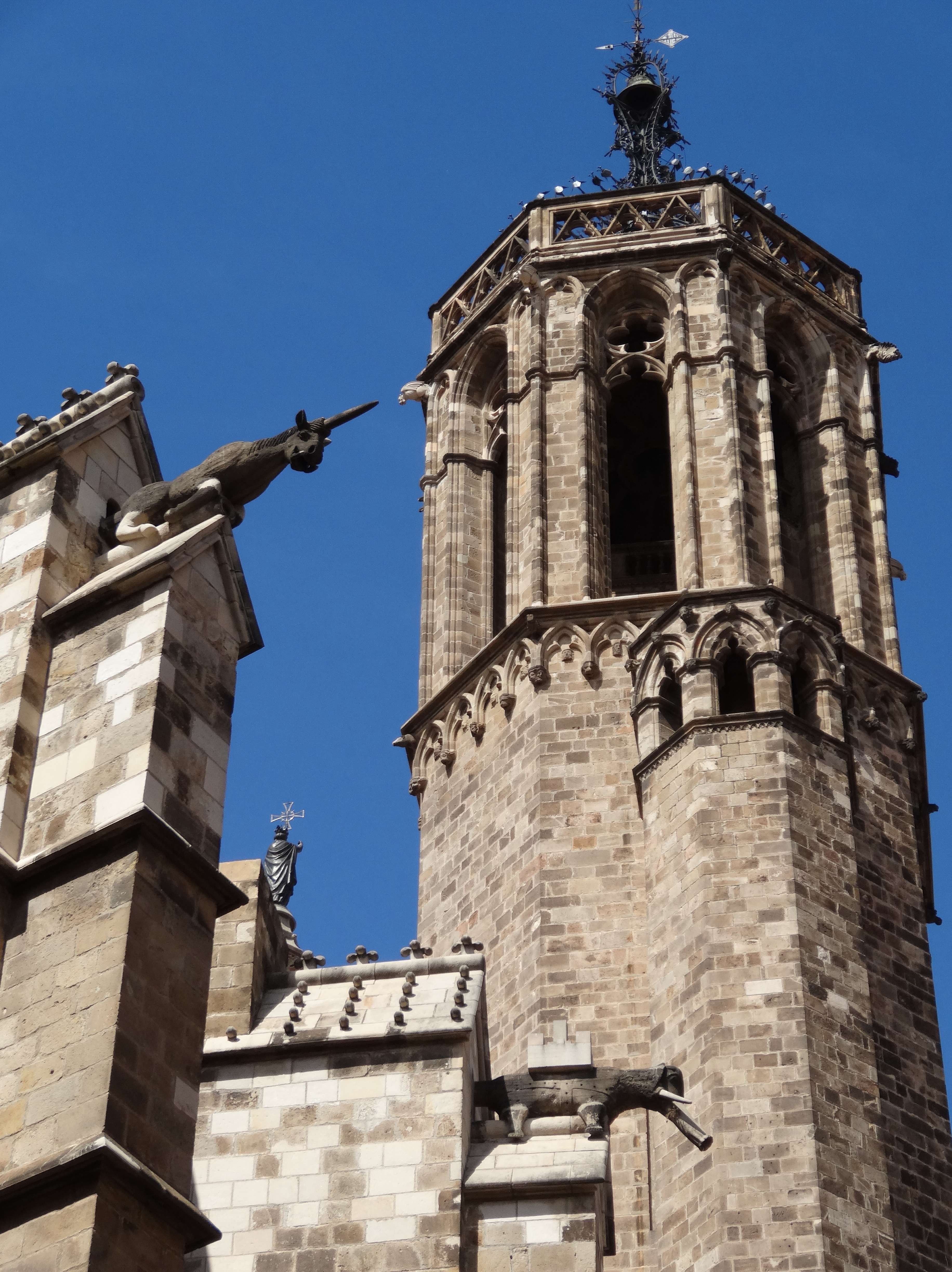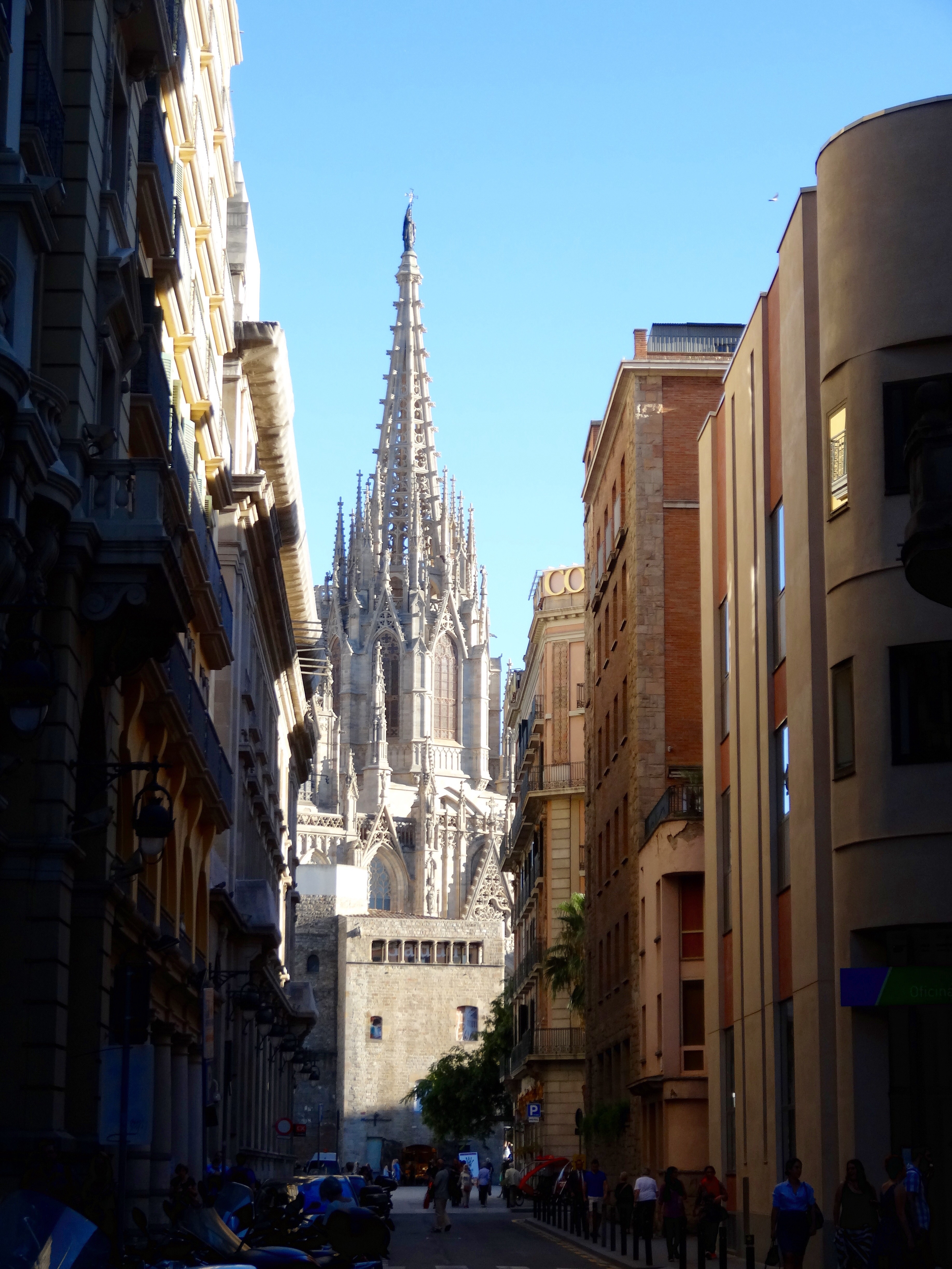 The sun lit up the steeple of the Barcelona Cathedral as we passed this street. Remember what I said about something to see every which way we look?