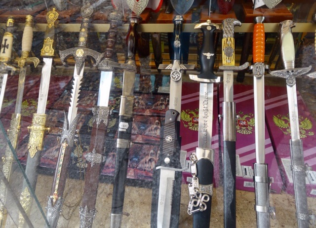 In the old Jewish part of town we walk down a street of tiny stores that sell buttons, and a bit of ribbon. I wonder how so many stores selling only buttons can survive?