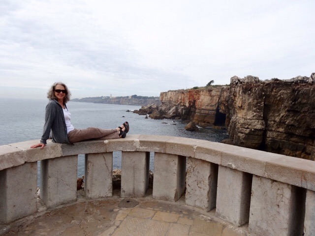but the crazy thing is that Lisbon is so incredibly hilly that on the other side of the viewing platform we are almost at ground level! If you look closely you can see people sitting on the patio just below where we are standing.