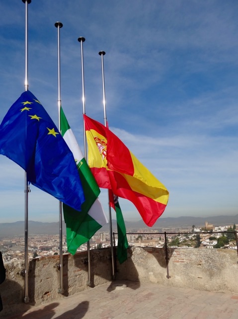 We are once more reminded of Paris as the flags here are at half mast.