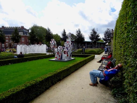 Bob had downloaded a museum app so we had a bit of a treasure hunt following their 90 minute guide to see what the museum considered their top works of art. It was a bit of a whirlwind trip through the museum and we retreated to the gardens outside to have our lunch. Bob also had a little cat nap…DSC08917and I checked out the playful fountain.