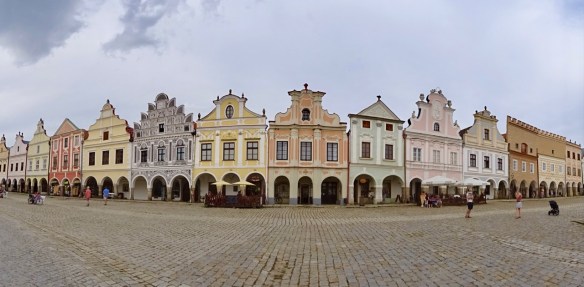 This panorama gives an idea of just how many houses line just one side of the square. They are all in a row, not in a curve as they appear in the photo.