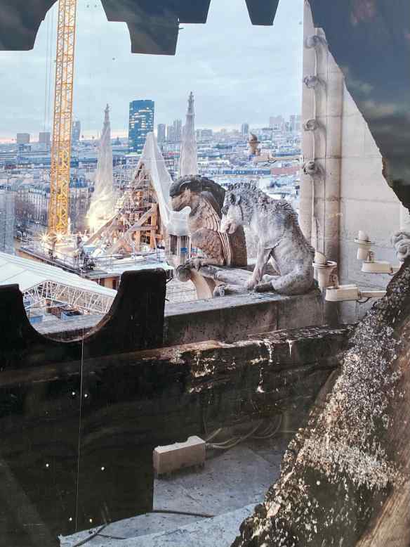 The cathedral is boarded off so no one is allowed up close. Apparently there were tours inside but only during July and August. Too bad. This is one of the photos from the boards that surrounded the cathedral. It looks like the gargoyles are looking down on the destruction. The reconstruction is slated to be completed by 2024, but it looks like there is still so much to do.