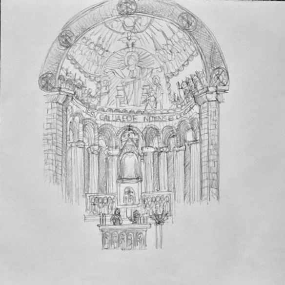 The organ is right above our heads. I think I am sitting just out of sight behind the left pillar.