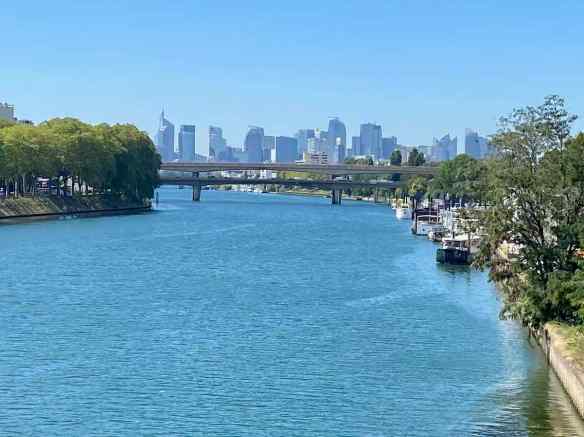 I am having a tough time recovering from jet lag this trip, so today was a quiet day. After supper we went for a walk to the Seine River. That is the business district in the distance.