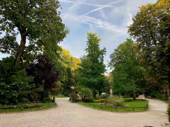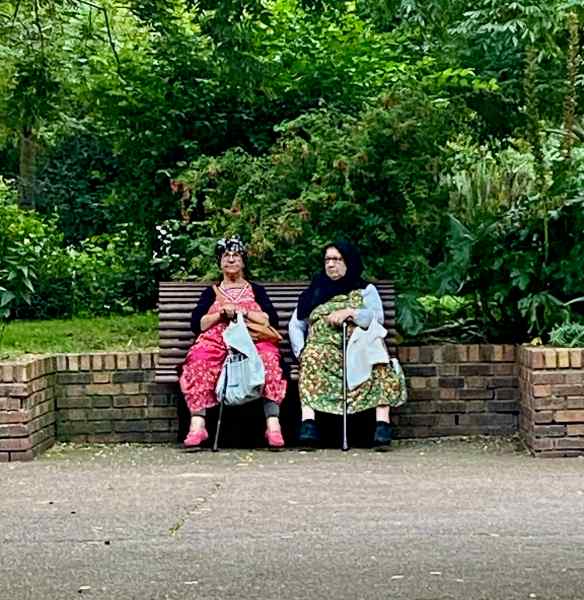 We find a little boulevard park to have tea and these sweet older ladies are sitting opposite us. I snuck a couple photos but they were a bit too far away so the resolution isn’t very good. I loved their outfits, that they were both sitting the same way with their canes between their knees, that their feet didn’t touch the ground…and they have such expressive faces.