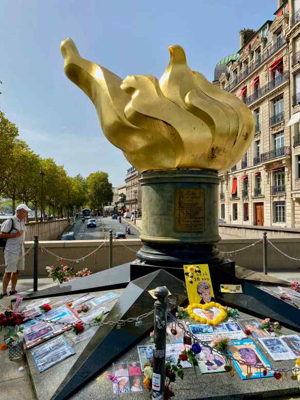 …and then we walk to the Eiffel Tower. On the way we see this memorial and realize that this is where Princess Diana died in a car crash 26 years ago.