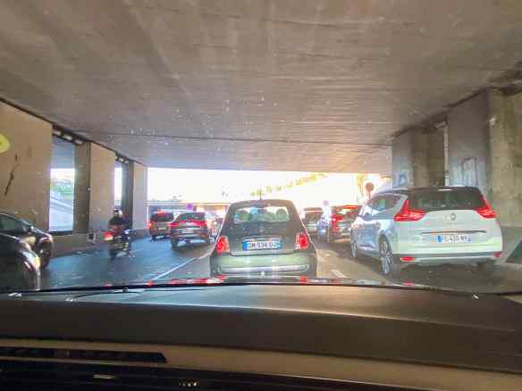 There are lots of cars on the road and the closer we get to Paris the slower they all go.  Our 75 minute drive takes quite a bit longer. It is busy when it takes 11 minutes to go just over 2 1/2 kilometres!  We are both happy to get home and glad our first day with the car went so well.