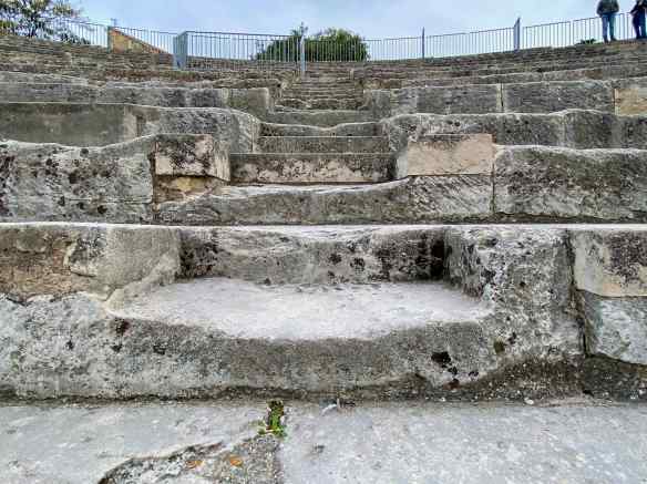 We climb lots of stairs to the roof of the palace. We started our tour way down there, under the raised seating of this outdoor theatre.