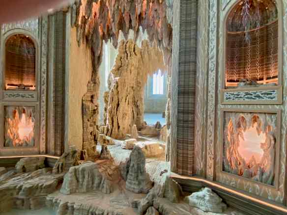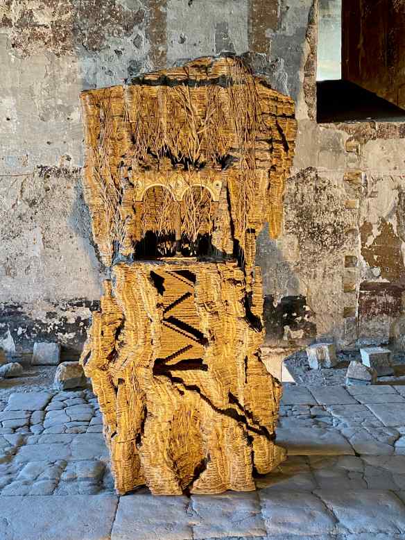 Next door is a small room that used to be a kitchen. It also has artwork, including this sculpture, ‘Empyrée’, that is suspended from the top of the huge chimney in the center of the room. Empyrée is from mythology and means ‘Highest part of the sky, where the gods reside’. I am astounded to read that this is also by the same artist, Eva Jospin.