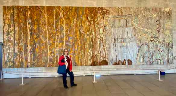 We spend a lot of time here as I walk back and forth, studying these huge embroidered panels. I can not believe how much work it would take to make these.