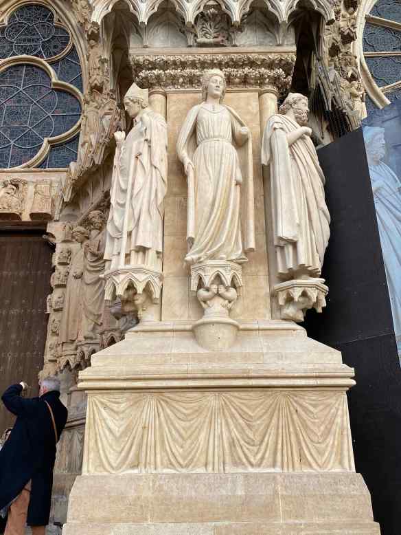 The cathedral was heavily damaged during the war and reconstruction appears to be an ongoing process…these statues look quite new.