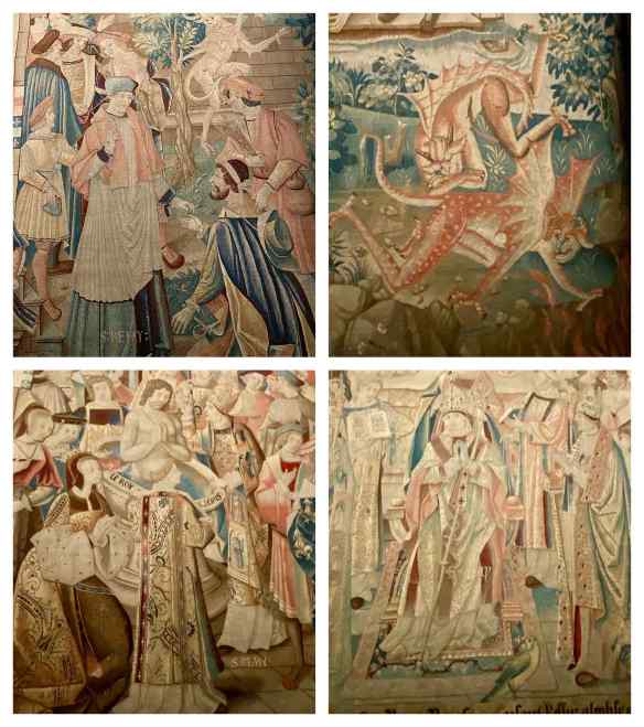 There are only three panels of the original ten that have been restored and returned to the museum. Here are the other two tapestries.