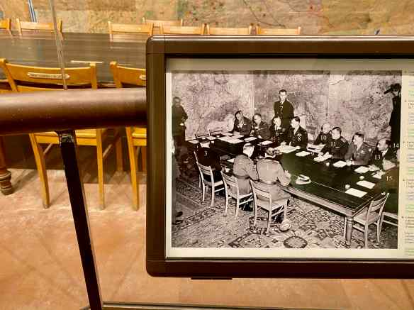 There is a photo of those present at the signing of this document and their nameplates are still on the chairs they sat. Other rooms hold exhibits of uniforms, press reports and war artifacts.  There was also a very informative film which we both found interesting.