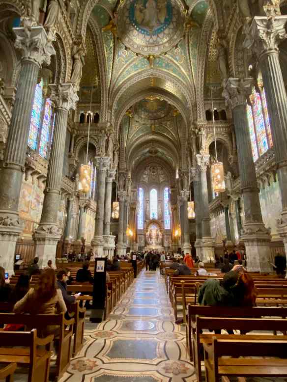 Notre Dame de Fourvière is impressive.  It took 25 years to build, was completed in 1896, and is dedicated to the Virgin Mary.  This UNESCO World Heritage Site has over 2.5 million pilgrims and visitors each year.