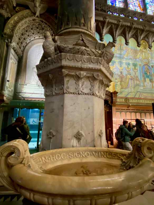In the museum we see this carved stone with the same symbol as the bronze medallions that helped us find our way earlier.  It is called the ‘keystone of the paschal lamb’.  I looked up paschal and it means relating to Easter and the Jewish Passover.