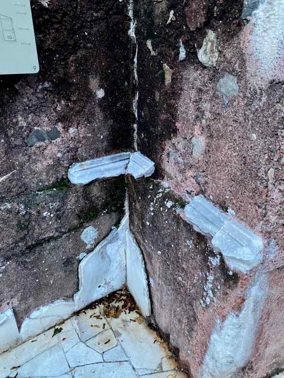 Bob spotted these  bits of remaining marble that once covered the stone surface.