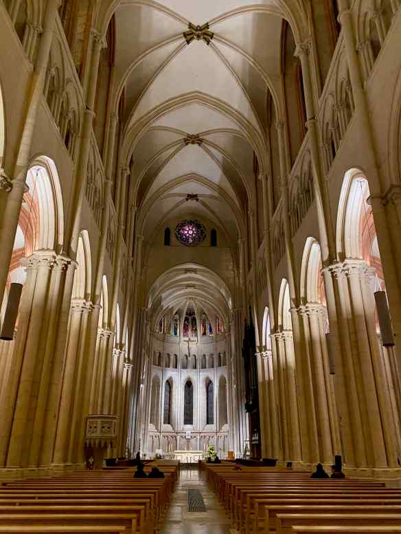 In just an hour we arrive in Cluny, find a parking lot and paid .15€, which is about 24 cents,  for all day parking!  What a bargain, although I wondered why they even bothered to charge anything.  It is quite a walk to the Cluny Museum and it is raining and cold.