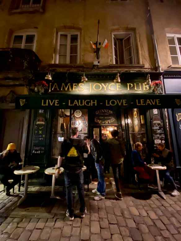 We find an outdoor market on our way to the indoor Lyon market. This is the first time we have seen the produce arranged in these metal bowls.  Only 2€ for a big bowl of lemons or tomatoes.  We bought a bowl of plums for 2€…they were good but it did add a couple pounds to Bob’s backpack for the rest of the day!
