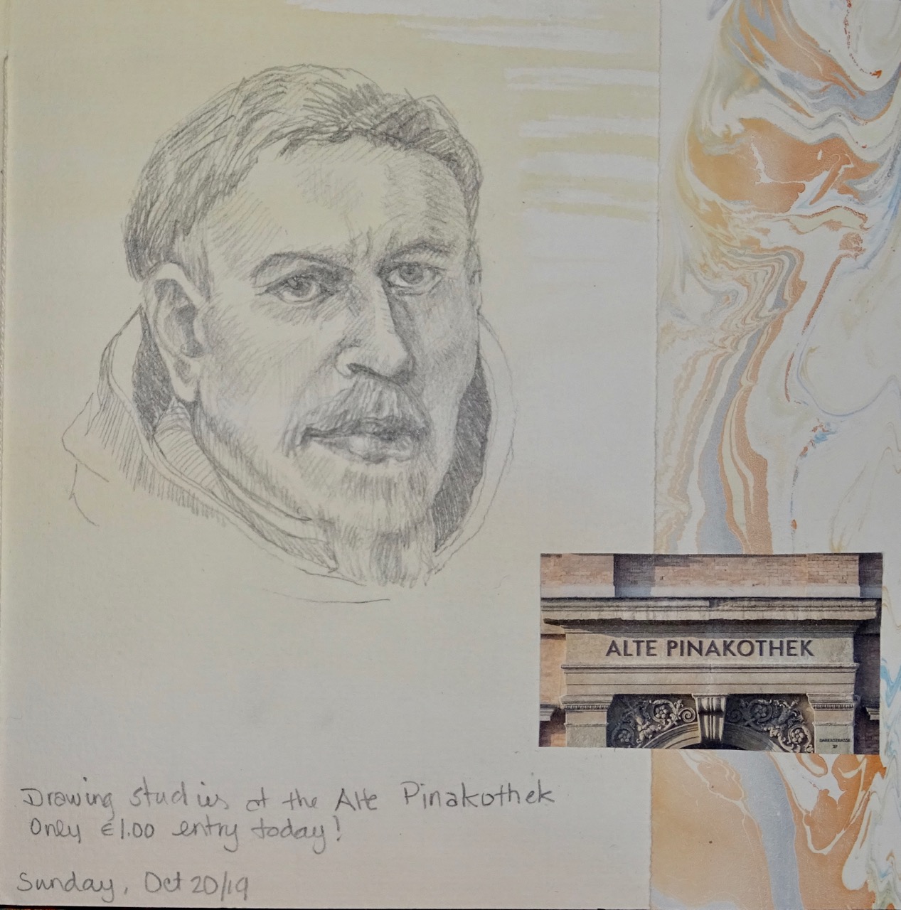 I asked how big the tea was and was assured that it was very big…well, this rather ‘very large” cup of tea was €5.50! Bob finds a spot to read and I go back to the gallery to do some sketching. They aren’t the best sketches but I had such an enjoyable time doing them. Two people asked if they could take a photo…people are always interested in what I am drawing.