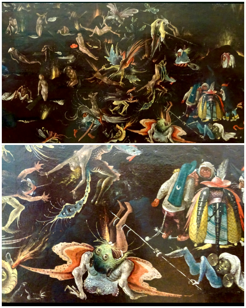 And then there is Hieronymus Bosch with his very strange creatures, in this fragment of the Last Judgement. His works always has lots of details to examine closely.