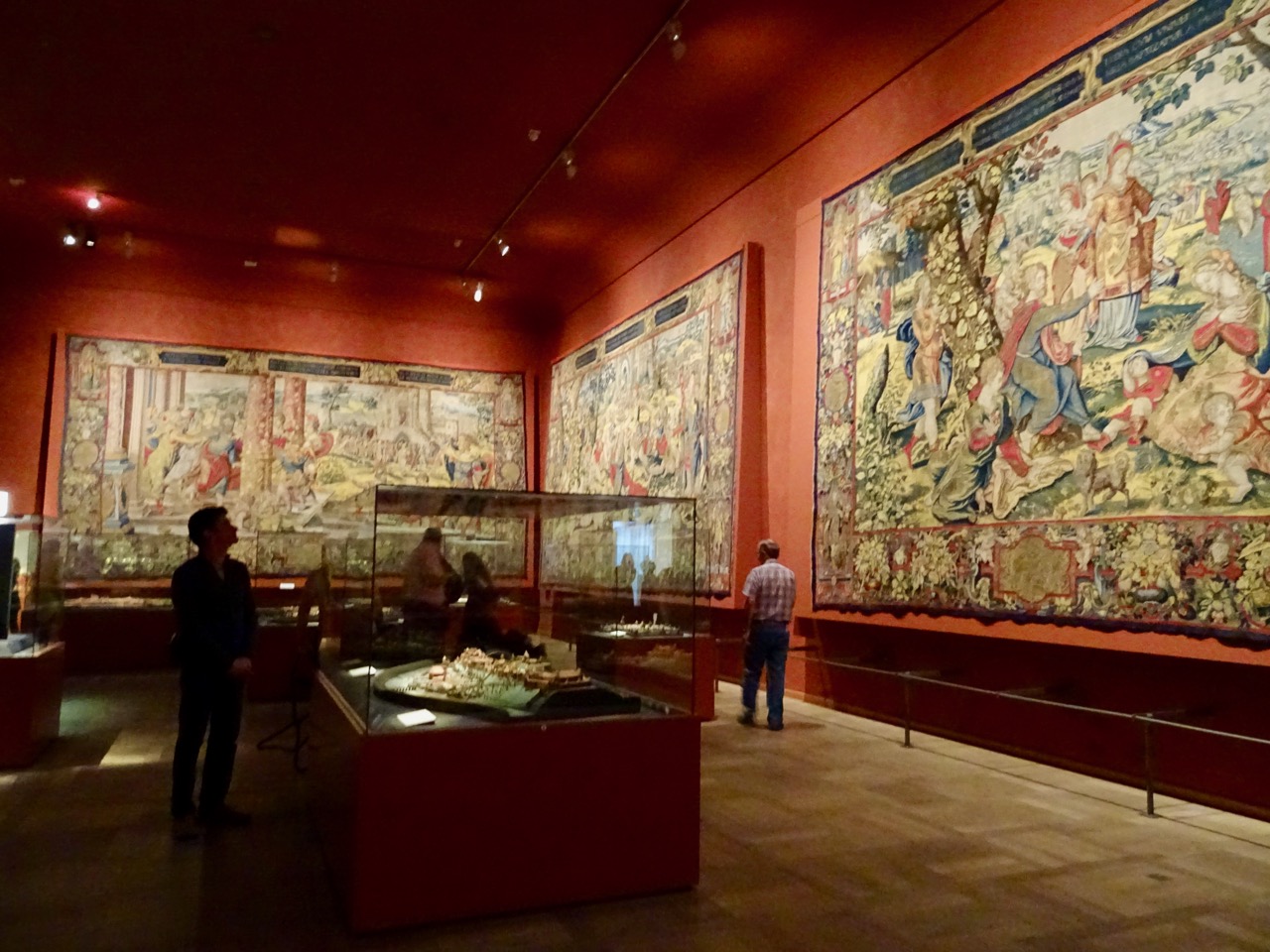 There are enormous detailed tapestries on the wall. We are amazed at the excellent condition of these tapestries.