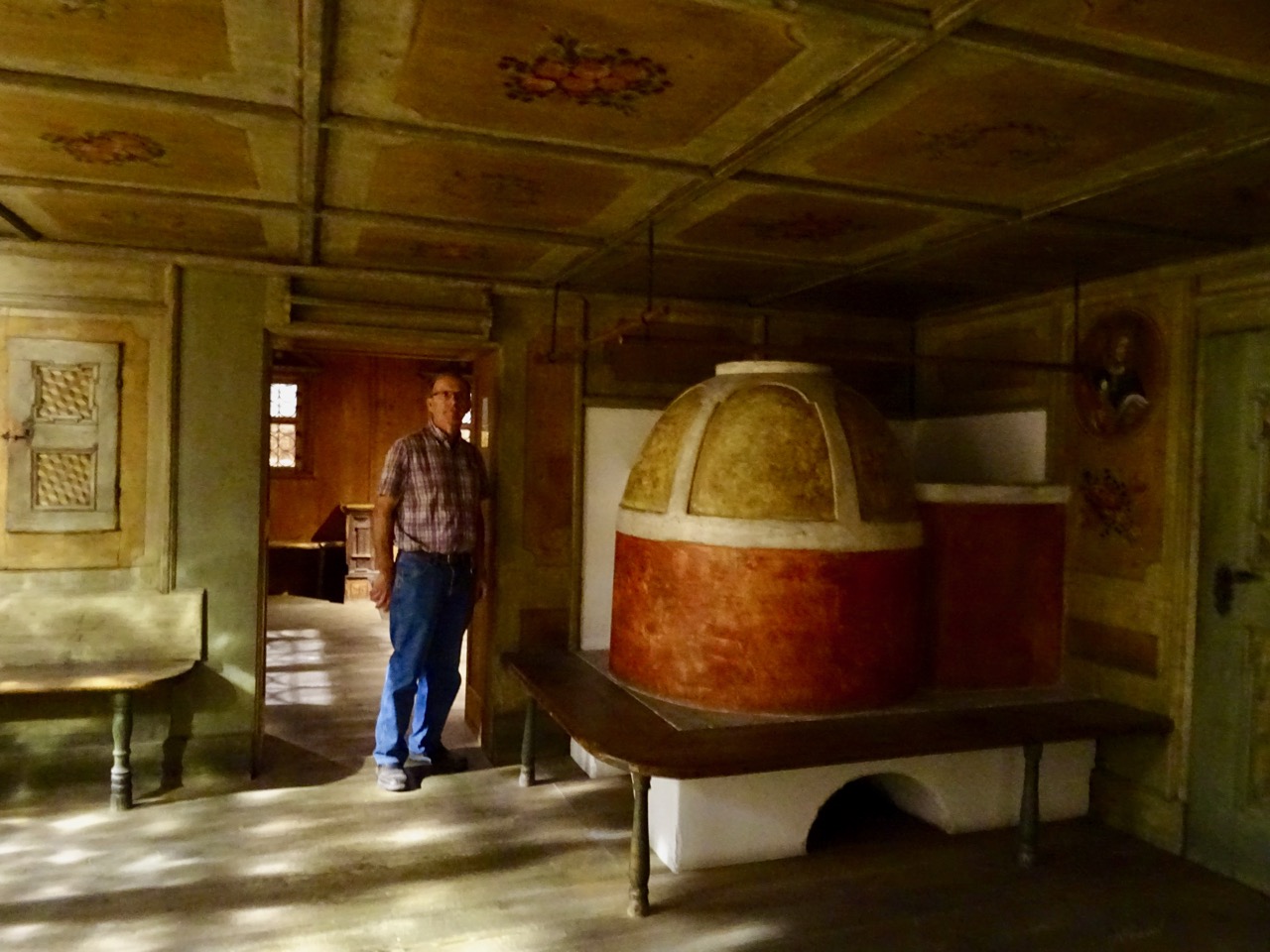 Downstairs there are several rooms that appear to be taverns. We aren’t sure, because all the signage here is German. I think the domed object in the corner is a stove to heat the room.