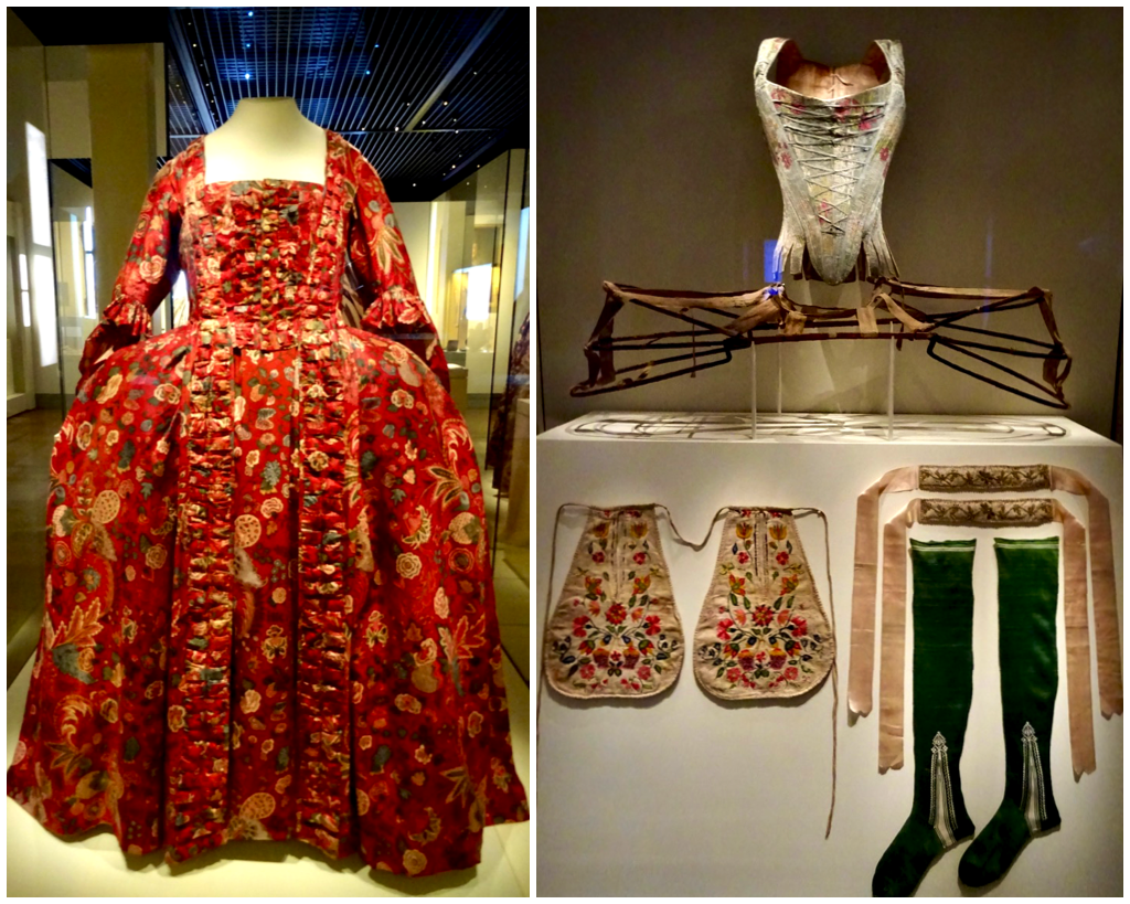 There is a wonderful display of clothing from the mid 18th century. Even the pet monkey had stylish togs.