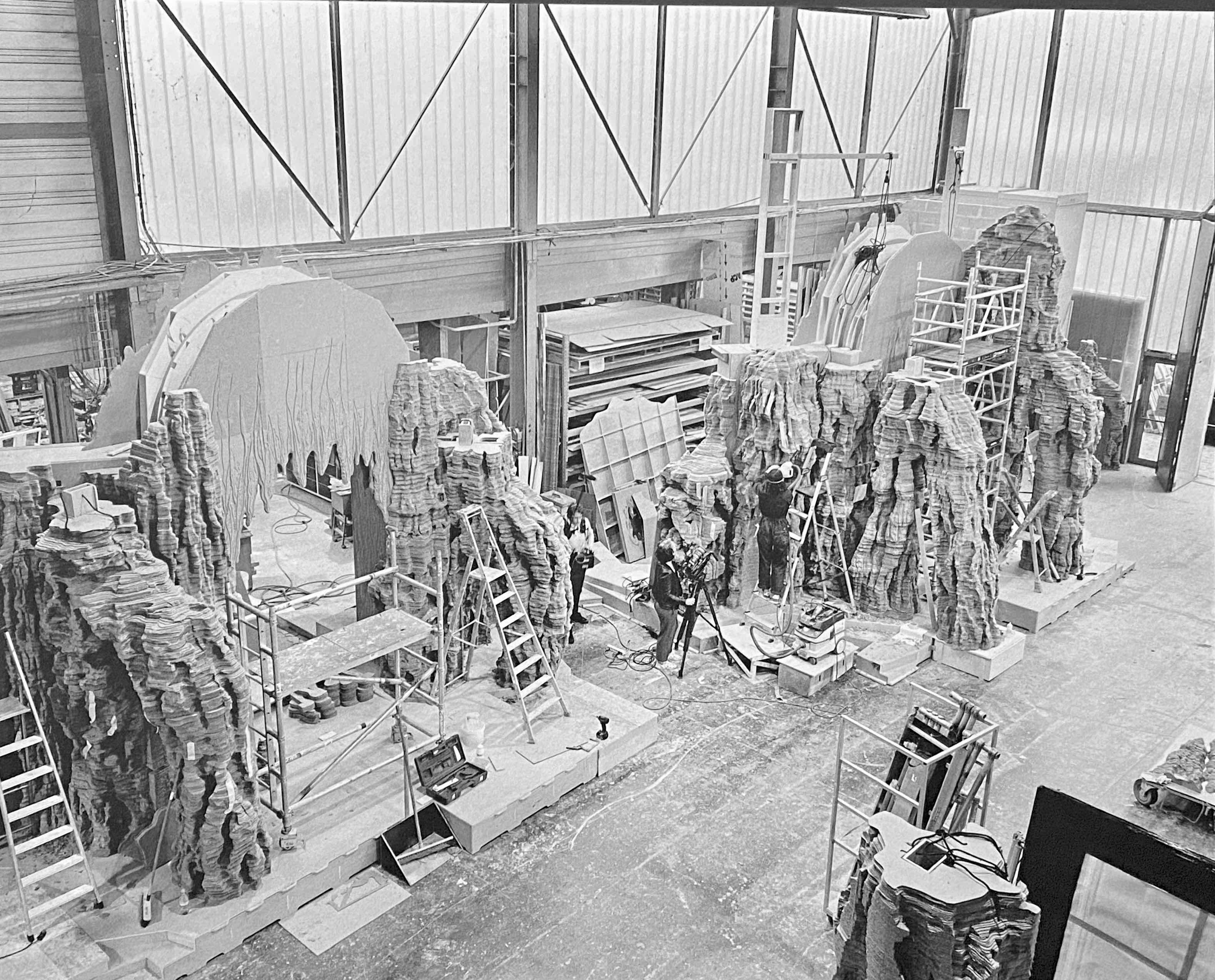 I did find a video explaining how these pieces are constructed with corrugated cardboard, but sorry, it is a FaceBook video so not everyone may be able to view it.