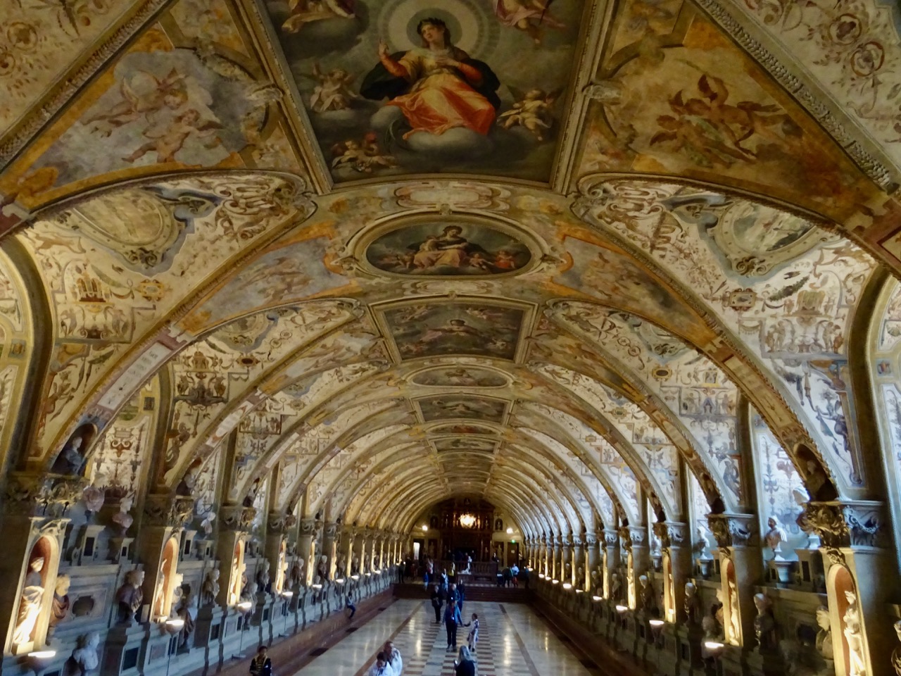 I took this photo before I was told that no photos were allowed in this church. The dome is gorgeous. There is lots of gold decoration and many icons in elaborate gold frames on display.