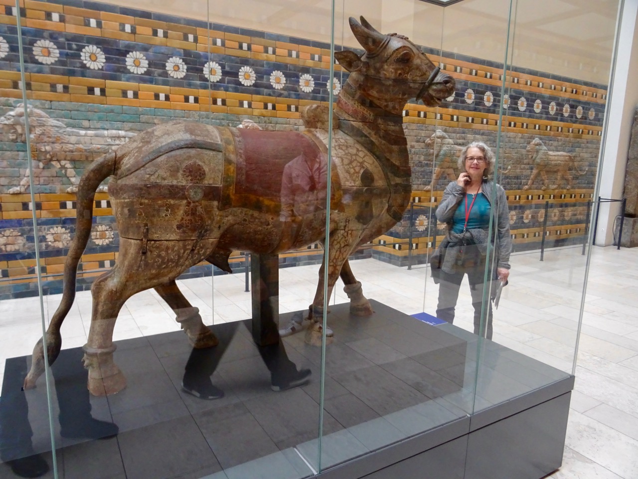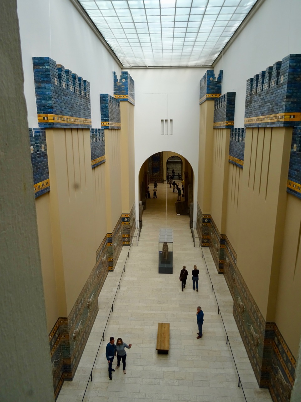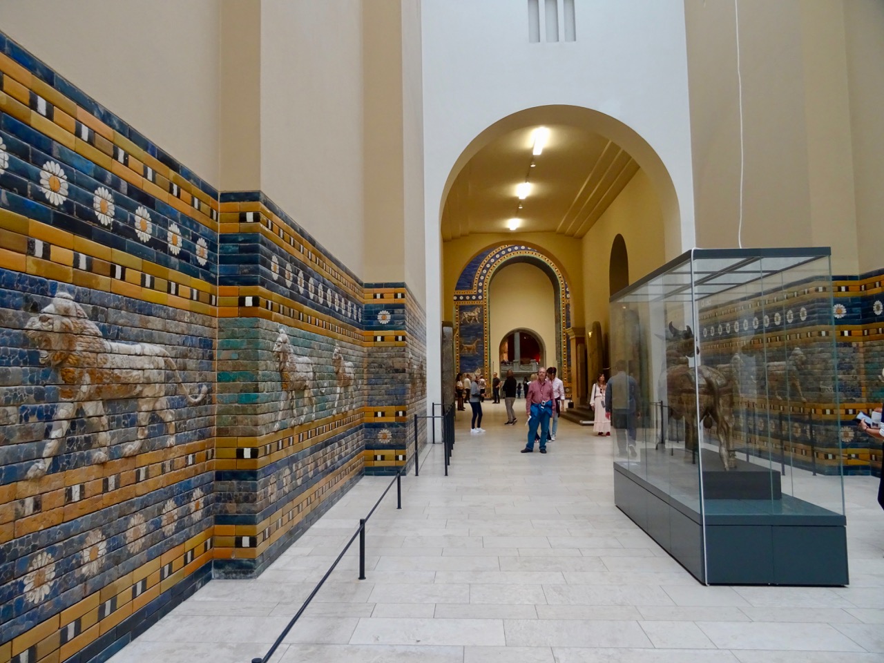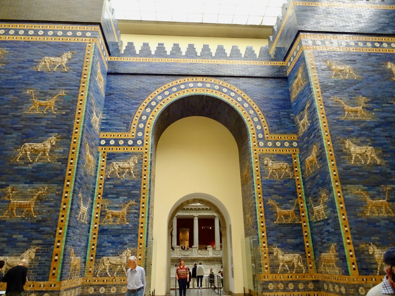 The reconstruction of the gate has original tiles around the animals. This is only a part of the gate, as the museum ceiling would have to be more than twice as high for the whole gate to fit.