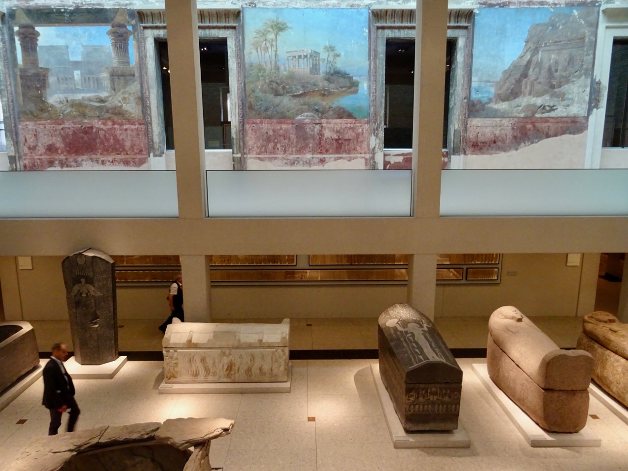 This is a room that was heavily damaged during the war. These three panels are all that is left of twelve panels that were on the walls of this courtyard. We actually visited the three Egyptian temples depicted on these walls during our trip there in 2011.