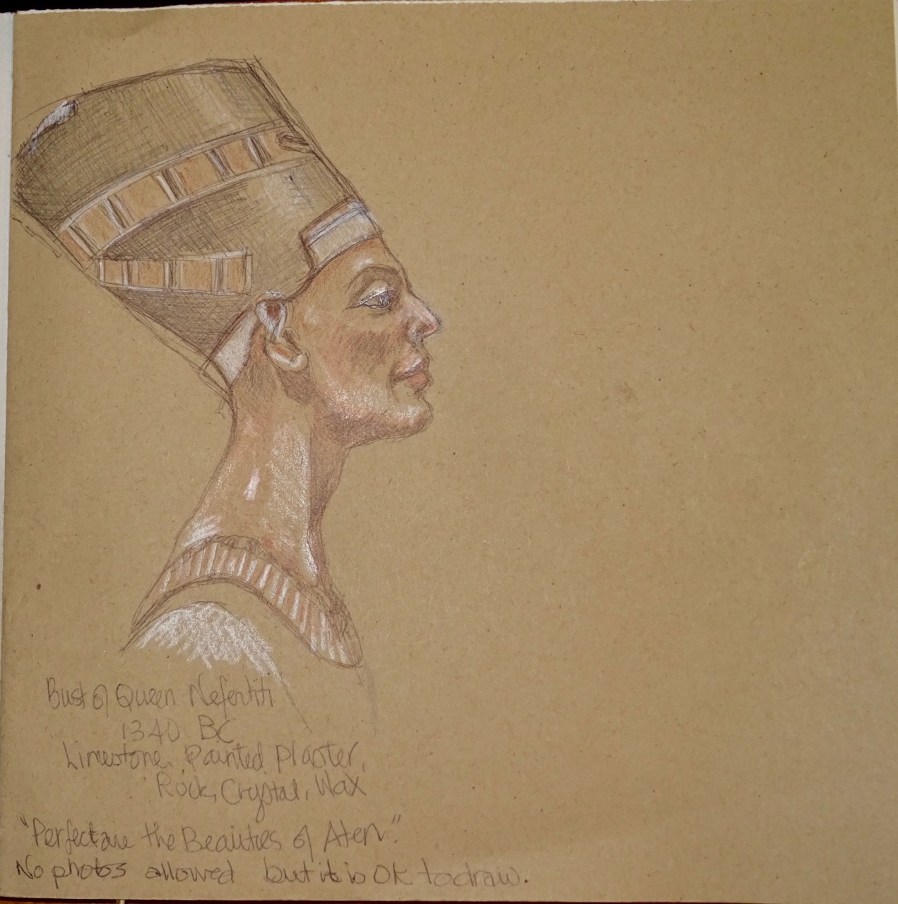 Next we visit the Neues Museum. This building suffered severe damage during the Second World War. In 2003 work began to restore the building without erasing the traces of past damage. We see evidence of this damage throughout the museum. Note the bullet and shrapnel holes in the pillars…