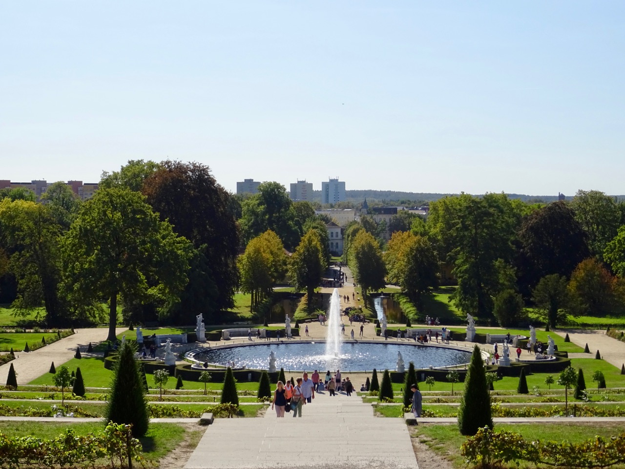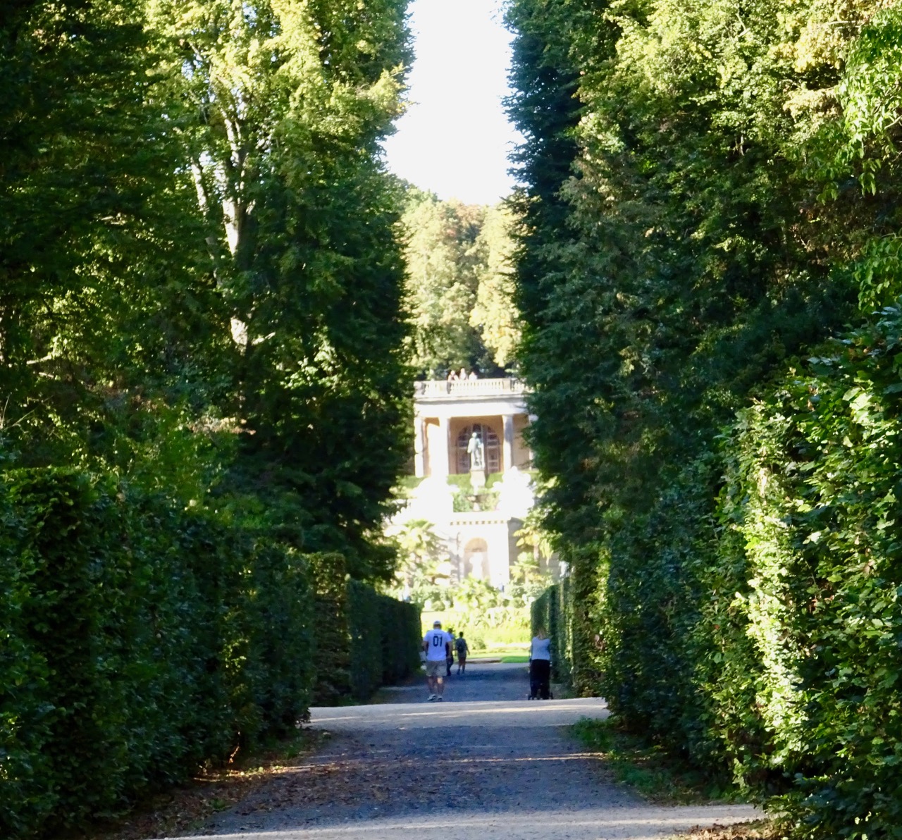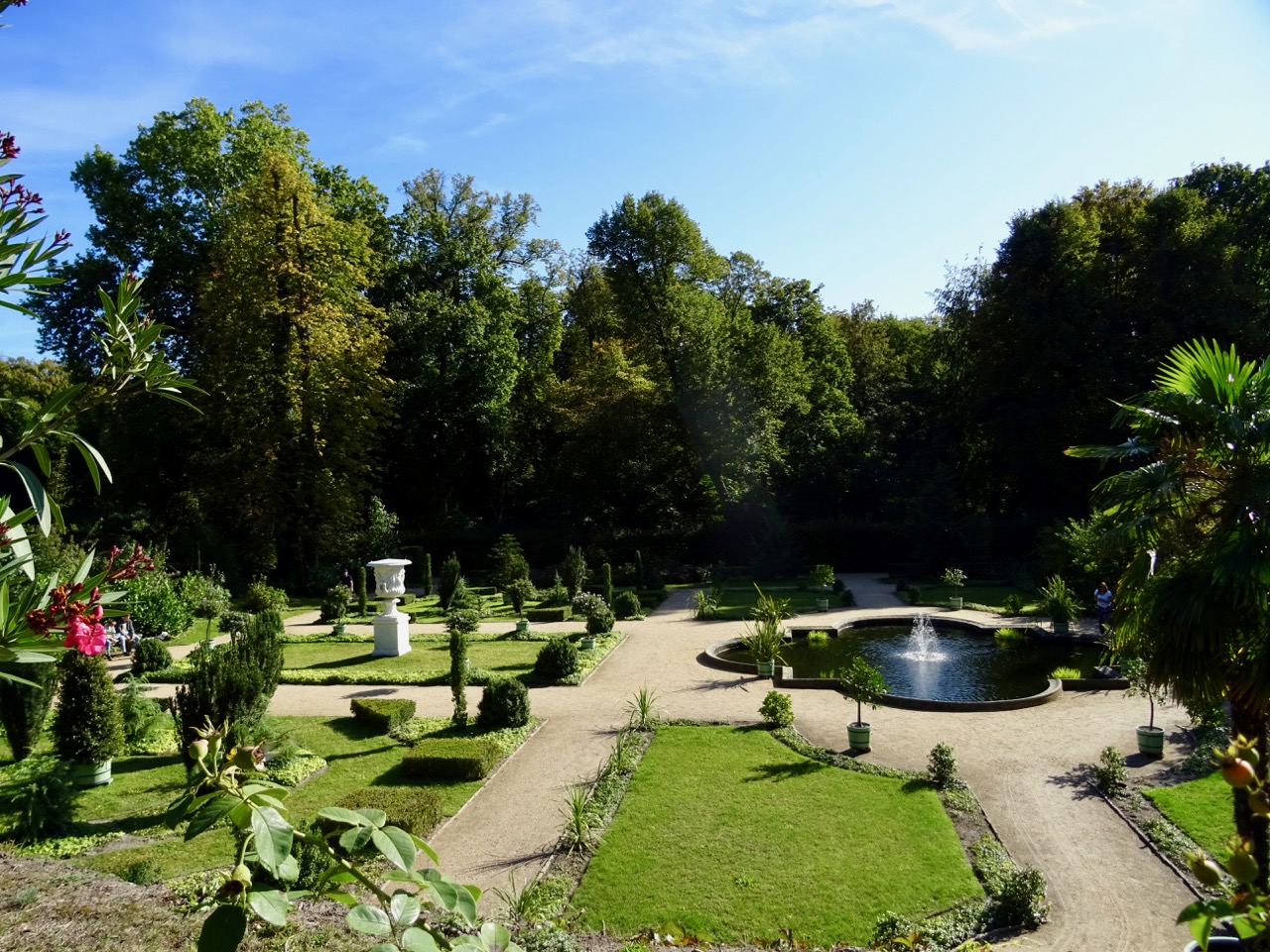 We walk through the park with its gardens and fountains towards the Orangerie.