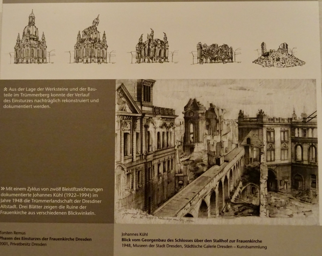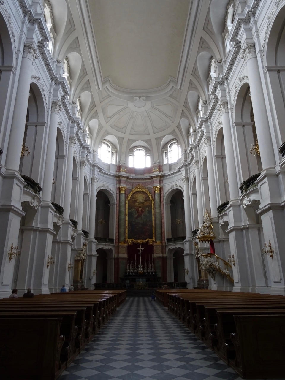 The Frauenkirche Dresden, or Church of Our Lady is a Luthern Church that was almost completely destroyed during the war. Only parts of its crypts remained intact. The interior is very beautiful with luminous pastel colours and lots of light.