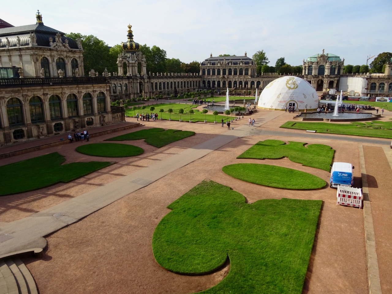 Back to the Zwinger Palace and Bob discovers that we can walk up to the elevated walkway for some great views of the palace and its grounds.