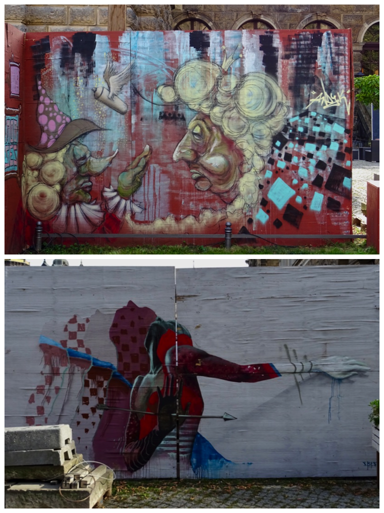 There is some work taking place on the outside wall of the palace and I really liked the graffiti on the construction barricades.