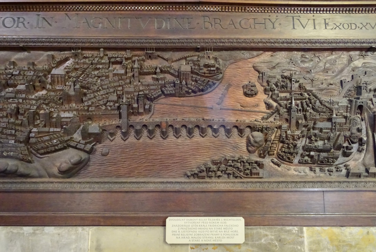 This wooden panel from 1630 shows the St. Charles Bridge, built in 1403, that we visited on Saturday. The city doesn’t really look all that different, does it?