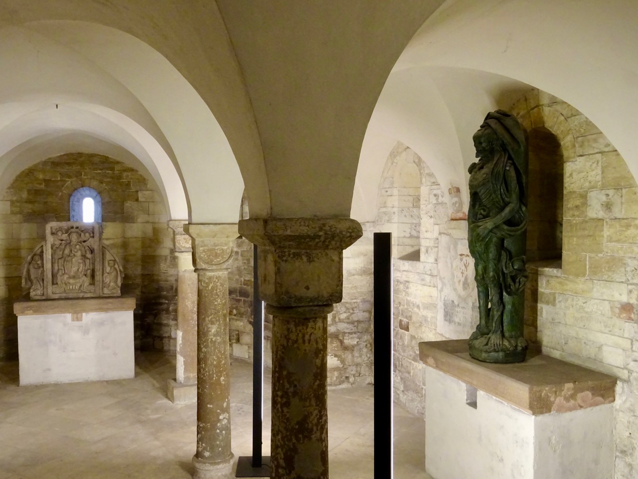 The crypt was huge, not what we were expecting at all. There were modern sculptures displayed here. This one shows ‘Construction’ and ‘Destruction’ opposite each other.