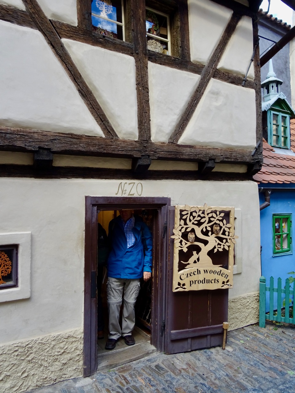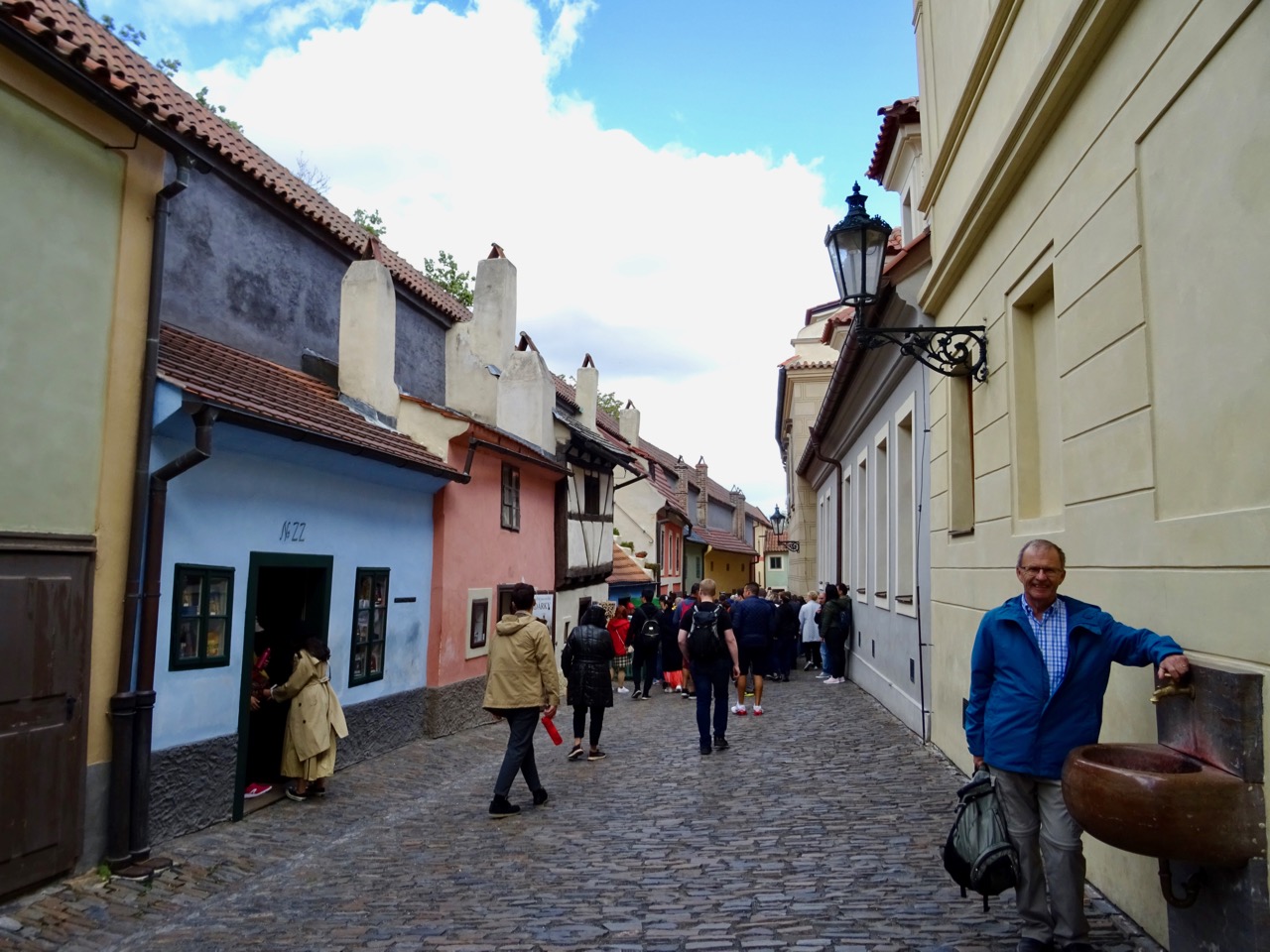 An amateur historian who saved many copies of old films that were intended for disposal during the Second World War lived here. We watch one film that showed scenes of Prague and this Golden Lane. It looks much like it does today.