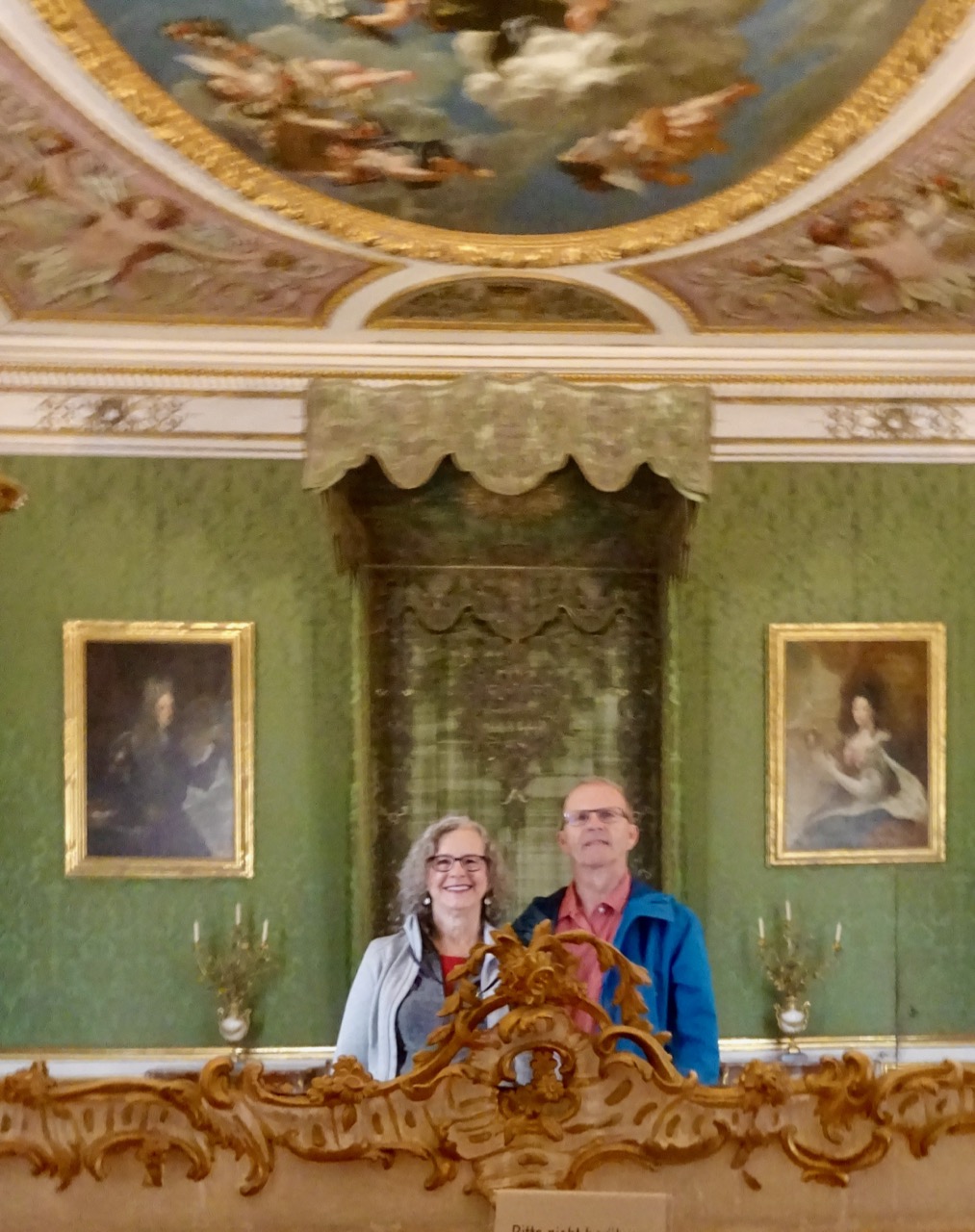 We enter the palace and take this selfie in the first room. It contains artwork and is an entrance hallway, not very wide at all.