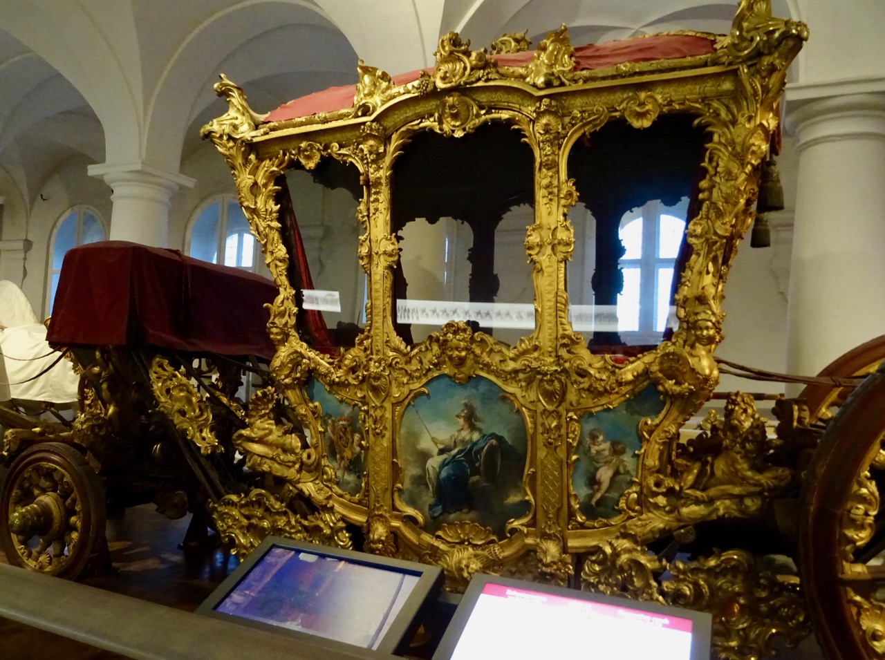 connected by a round room with a vaulted gold ceiling. At the far end there is a room for small paintings. The last photo is taken looking out from this room. There are a lot of beautiful paintings but they were a bit hard to see because of the glare from the windows on the opposite wall. I am surprised that they allow the much sunlight to enter the gallery, but it did make the space bright and very attractive.