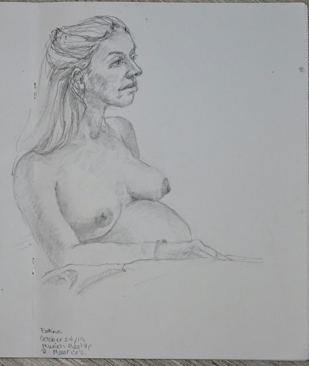 We get home, have dinner, then I head off to a drop-in drawing session with a Meetup group at a pub called Monami.