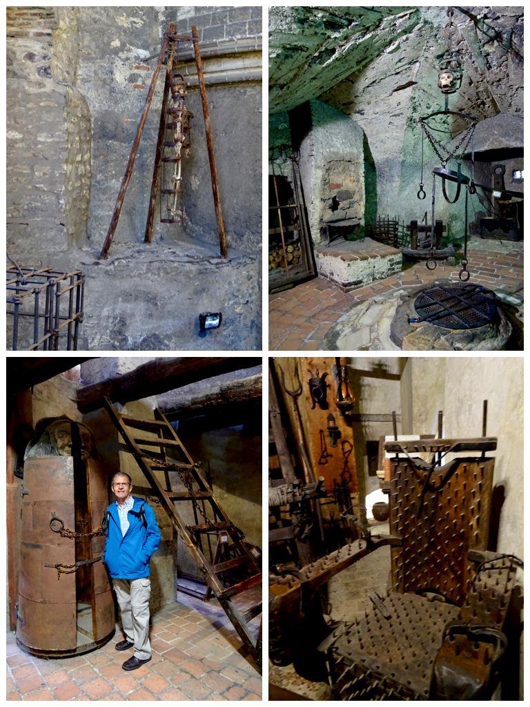 And then there is the torture chamber. These places give me the creeps. It is just so hard ot think of people subjecting each other to such pain and terror. Bob is standing beside an Iron Maiden, which has spikes inside just long enough to pierce the body and make sure that the person inside dies a slow painful death. There are two spikes placed so that they will pierce the eyes of whoever is placed inside, and take a look at that chair! It is enough to give me nightmares.