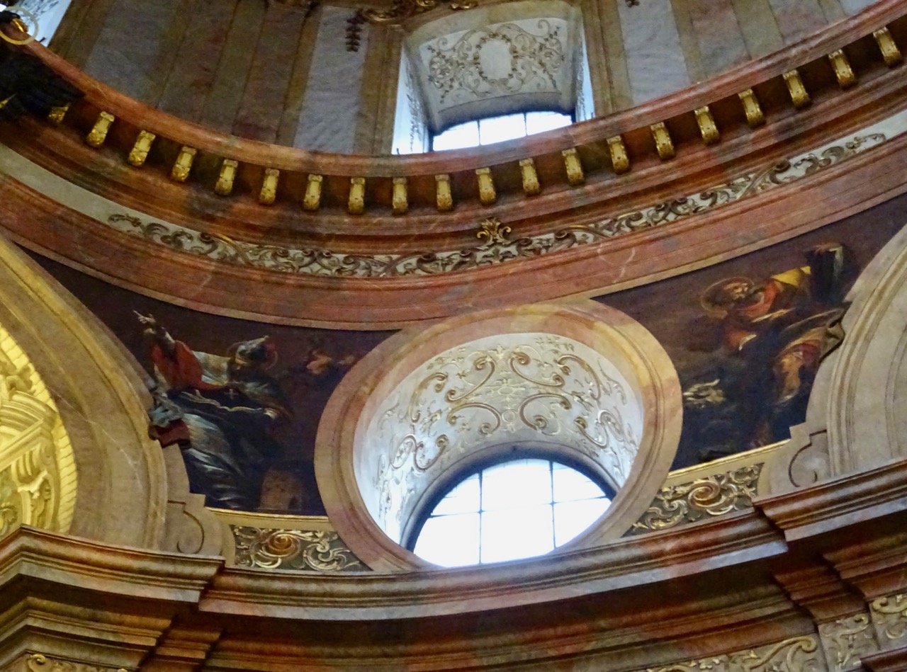 We have a great view of the dome paintings. It is interesting the way the gold highlights look up this close…