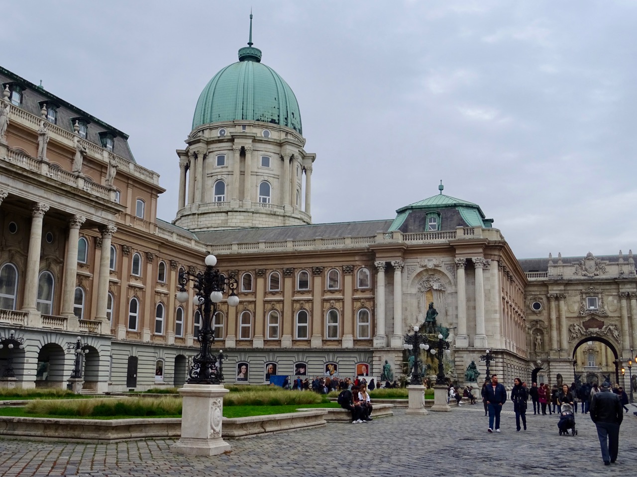The front of the Buda Castle with lots of tourists…
