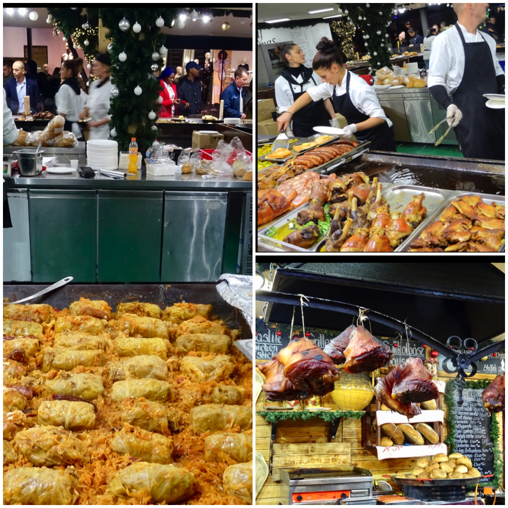 I also took photos of the food stands. Pork hocks are a big item here! We were going to buy a meal here a few days ago but quickly changed our minds when we discovered that one cabbage roll, albeit a big one, would cost us 5,000 Forints, the equivalent of $25 Canadian! A small plate with a sausage and two small helpings of side dishes was $35.00! We were rather shocked at how expensive it was. We saw other tourists change their mind and refuse to purchase what they had ordered when they realized the price.