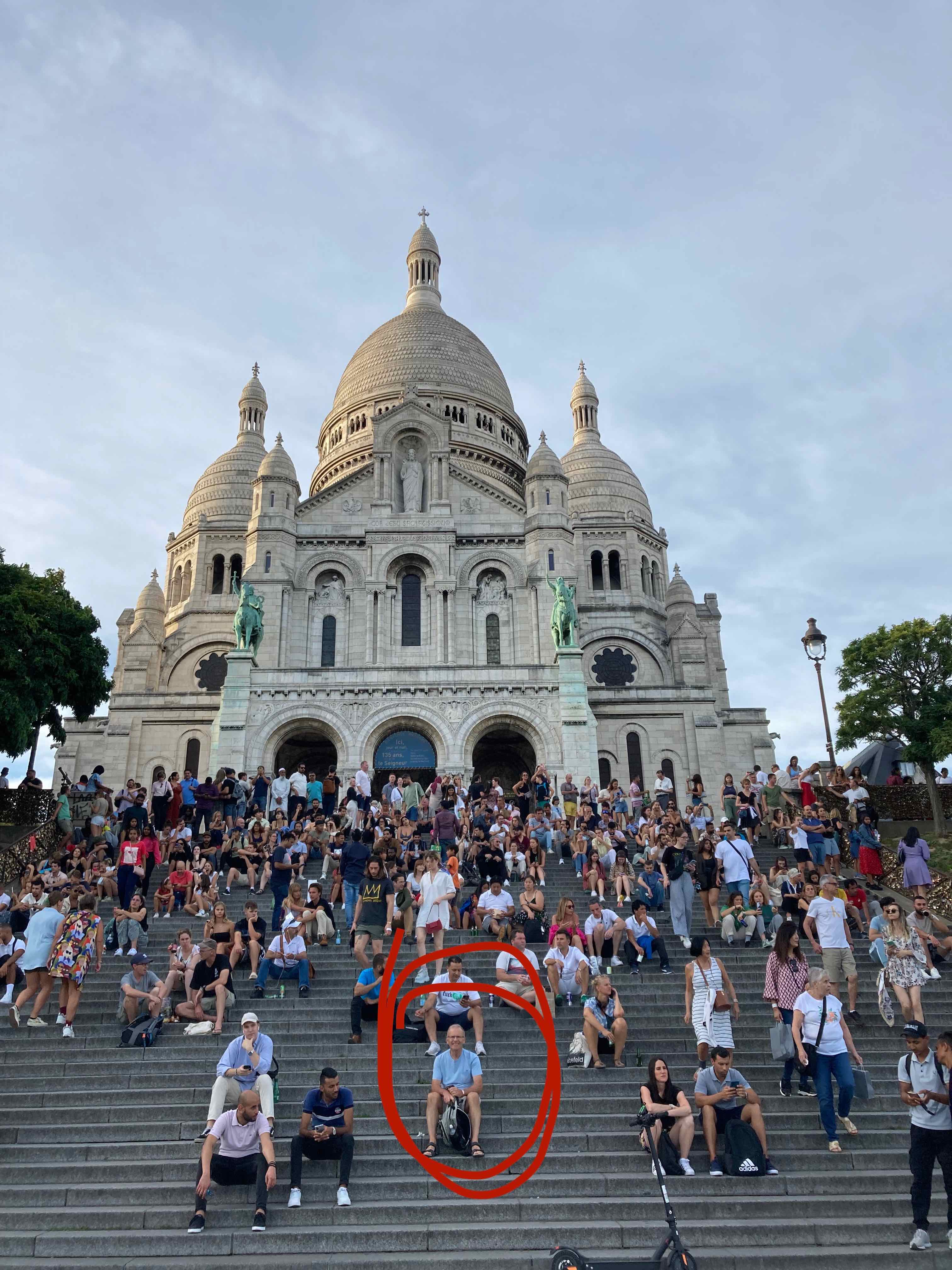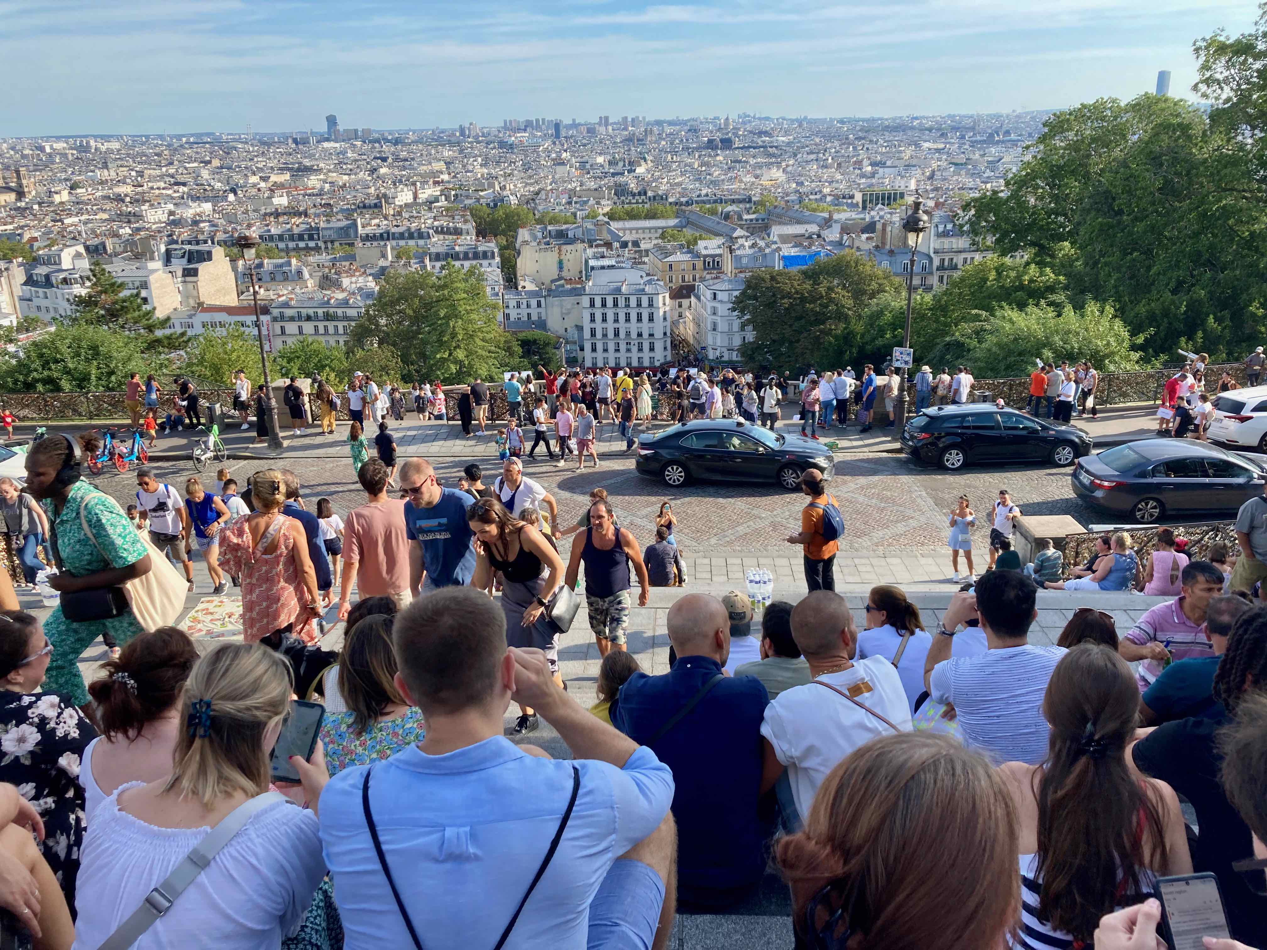 Can you find him in the photo below? There are always so many tourists sitting on the steps to enjoy the view.