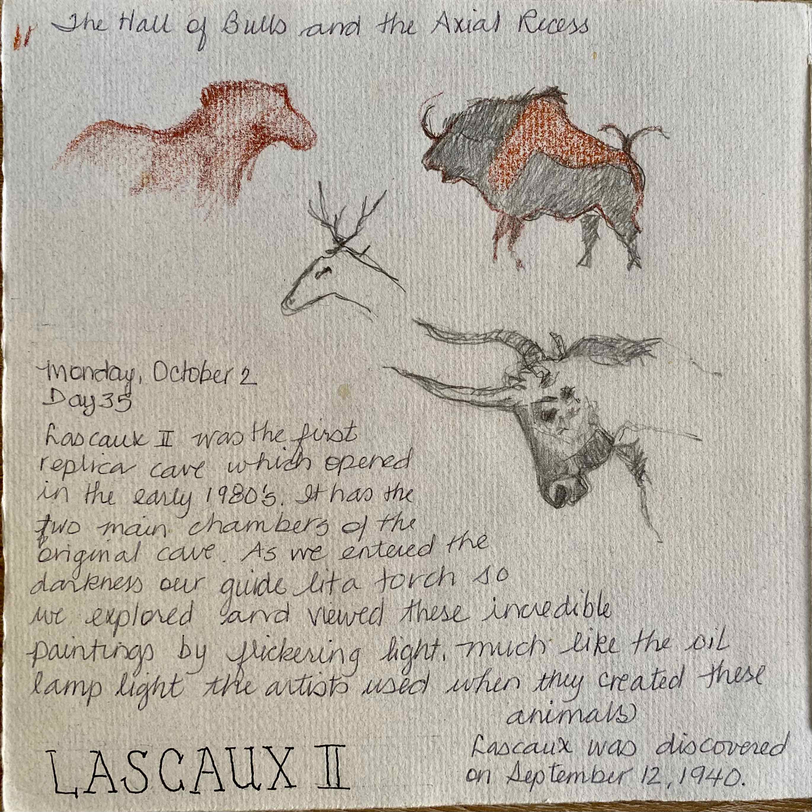 The last room we entered had huge animations which travels across three walls and sometimes over the floor and ceiling as well. I particularly liked this one which shows mammoths from the Rouffignac Cave, which we hope to visit later this week.