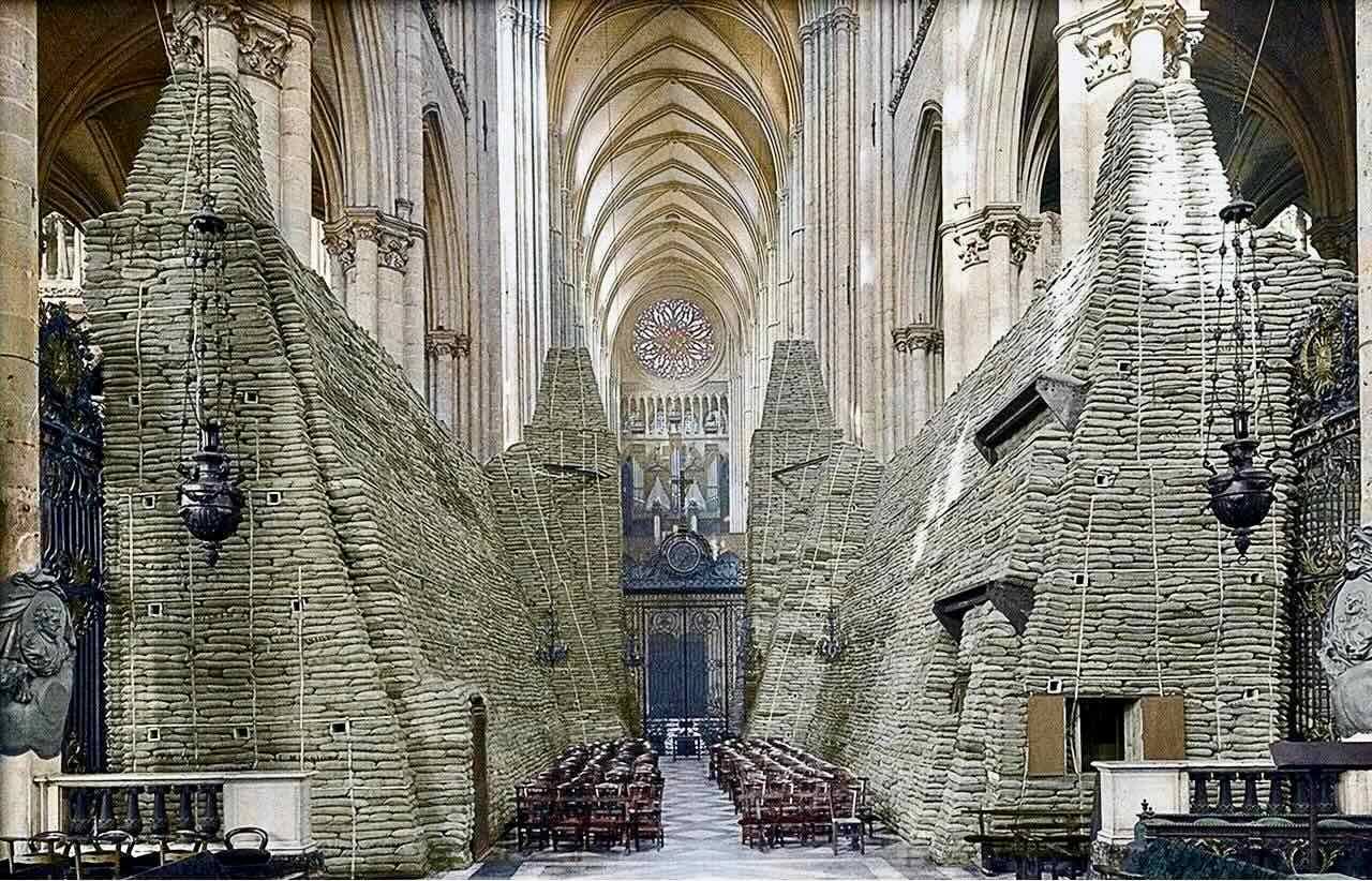 There are several large sculptural pieces that are from the church cloister. I think they were placed inside the church as a method of keeping them safe from damage.